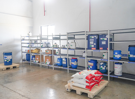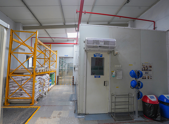 We have a centralised warehouse to store and dispense different kinds of raw materials and packaging materials. The warehouse is designed and maintained to prevent contamination, cross-contamination and deterioration. We have separate Sampling and Dispensing rooms with RLAFs to eliminate cross-contamination and protect the operator whilst handling the raw materials. In addition, our warehouse has provisions to segregate and identify materials of different QC status.